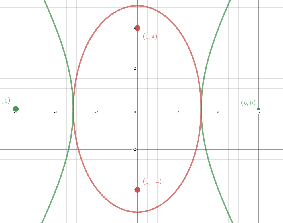 The equation of an ellipse is \(\frac{x^2}{a^2}+\frac{y^2}{b^2}=1\)