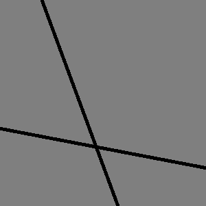 How about 2 lines? This problem is slightly harder, but this problem is still manageable because there are few options. Wrestling with this problem for a short while reveals that we can maximize the number of regions by ensuring that the individual lines intersect at some point on the plane. Below reveals my solution for 2 lines. For 2 lines, the best we can do is divide the plane into 4 distinct sections or regions.