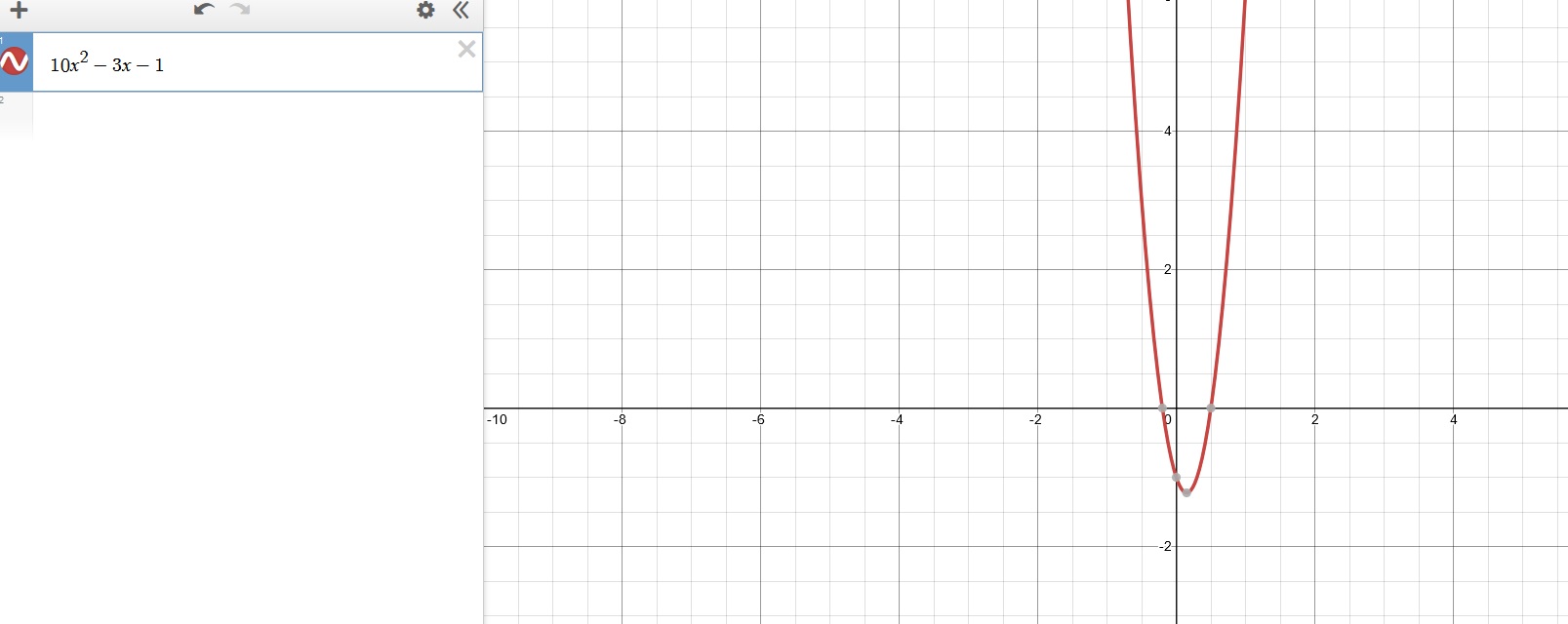 10x^2 -3x-1 -1 is the y -intercept (it looks like)