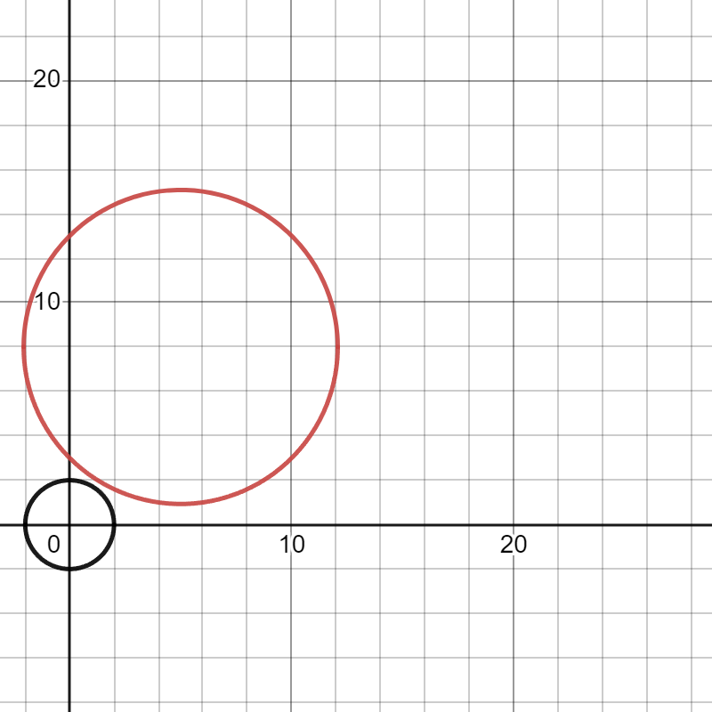 \(r^2 = {\rm AE}^2 + ({\rm AB} + l)^2 \\ r^2 = 2^2 + (2 + l)^2\) | \(r^2 = {\rm CF}^2 + ({\rm BC}^2 - l)^2 \\ r^2 = 5^2 + (5 - l)^2\) |