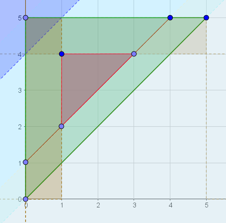 So all possible outcomes are within the green area which is 0.5*5*5=12.5units squared