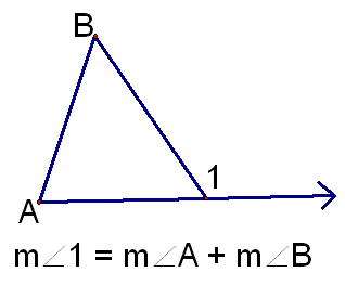 There is a theorem that would be very helpful to know here. It is called the triangle exterior angle theorem. It states that the exterior angle is equal to the measure of the two remote (angle opposite the exterior) angles. This definition may be hard to understand, but a diagram would probably be useful. It may not be the neatest drawing, but you should understand the concept.