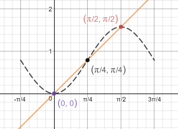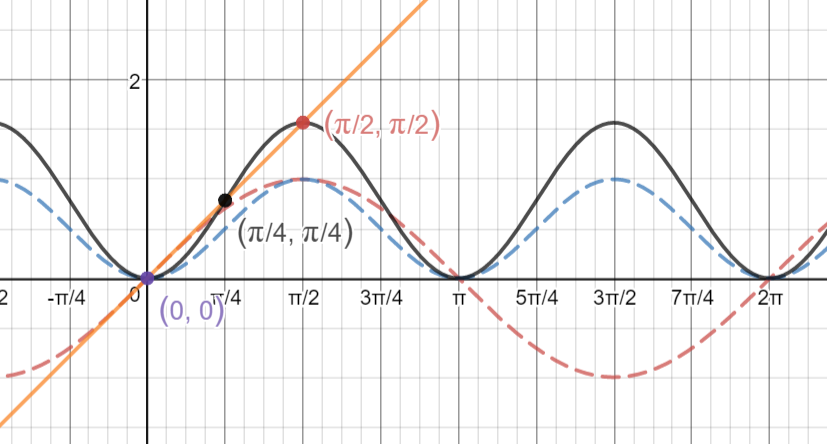So you want the intersection of \(y=\frac{\pi}{2}\;sin^2x\) with \(y=x\)