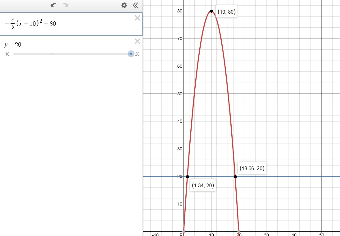 20 = (-4/5)x^2 + 80 subtract 80 from both sides