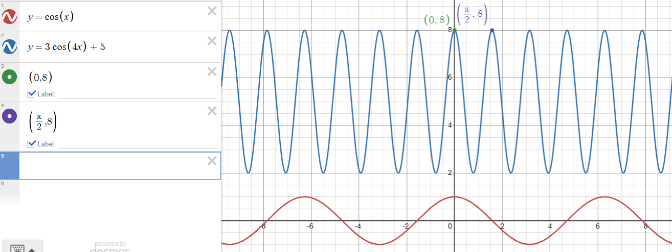 Amplitude = A = (high point -low point)/ 2 = (83 - 5) / 2 = 39
