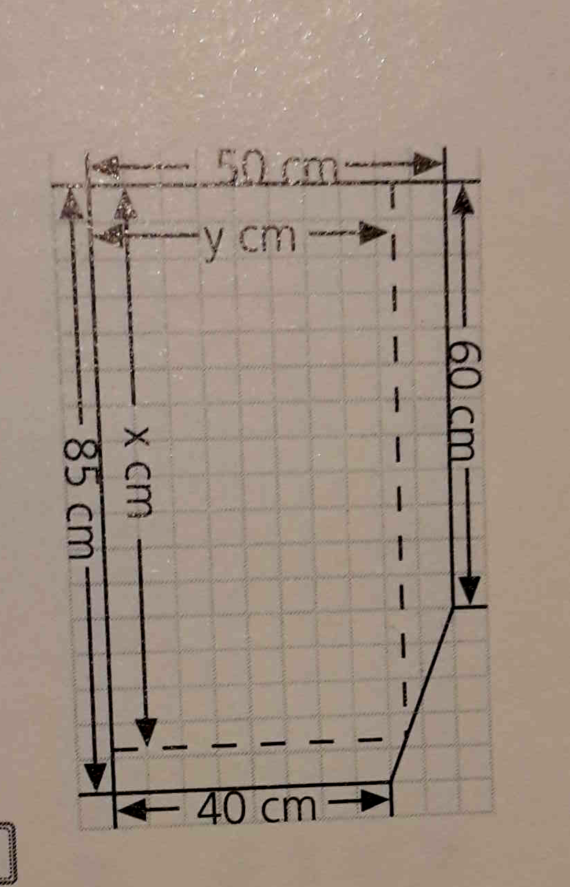 Damit ist \(x = 85\ cm\) und \(y = 40\ cm\) die gesuchte Lösung.