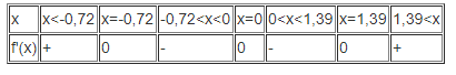 | x | x<-0,72 | x=-0,72 | -0,72 | x=0 | 0 | x=1,39 | 1,39 |